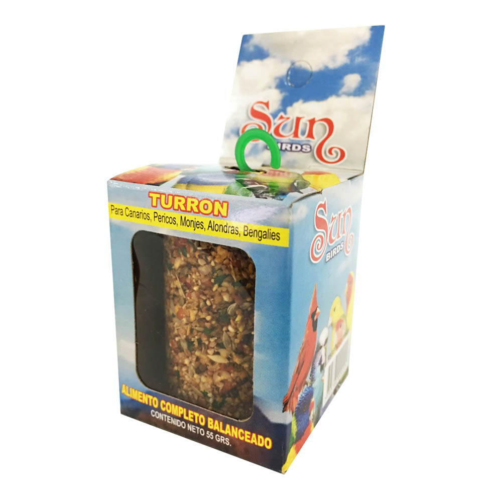 Alimento tipo turrón horneado, ideal para alondras, pericos, canarios y aves ornamentales.